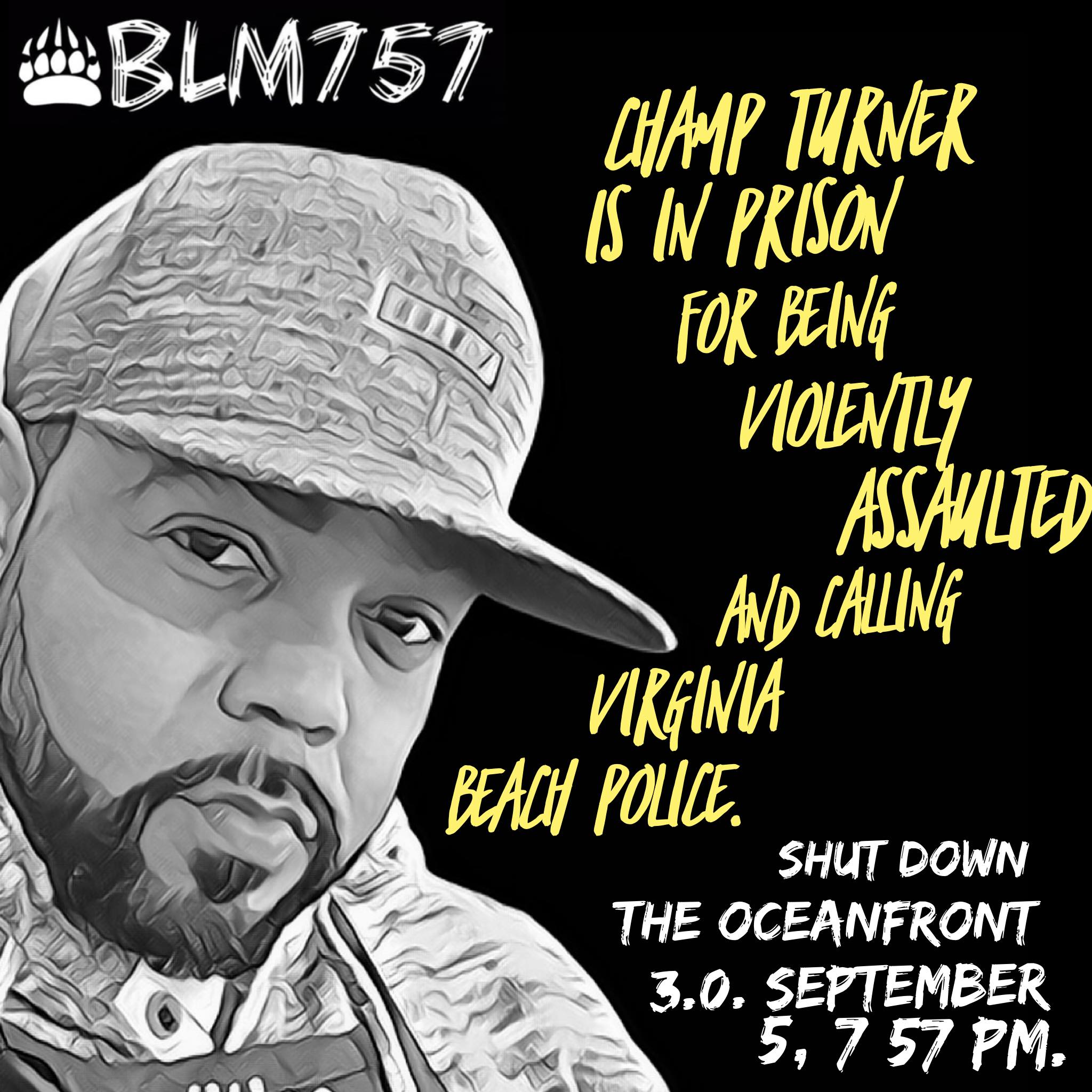 The Virginia Beach Judicial system has arrested and over-sentenced Champ Turner. Champ is in prison for being violently assaulted and calling the Virginia Beach Police. Judge Shockley is on court transcripts saying, “I don’t know why, how, or what happened […] I’m finding you guilty.” Mr. Turner was attacked by an extremely large white man who appeared to be experiencing a mental health crisis. He defended himself to save his life. Today, his attacker is free without consequence while Champ is in prison for ten years.
