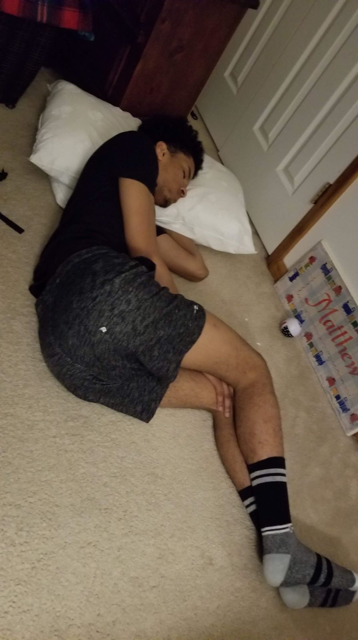 But, not everything was the same. Following his injury, Matthew could only sleep on the floor.